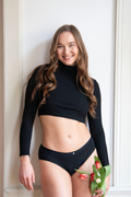 Der höhere Beinausschnitt ist extra bequem und die sehr weichen und flachen Gummis in den Bündchen sorgen für hohen Tragekomfort.