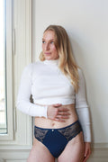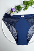Diese luxuriösen brasilianischen Slips mit geringer Saugfähigkeit kombinieren auf sinnliche Weise feine Spitze und weiches Modal. Durchdachter Schnitt, feinste Materialien und zarte Merino-Wolle sind ein Fest für die Augen und das Körpergefühl.